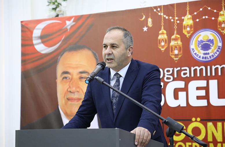 Programın açılış konuşmasını gerçekleştiren Belediye Başkanı Şerif Arslan, katılımcılara teşekkür ederek şunları kaydetti: "Başı rahmet, ortası mağfiret, sonu ise cehennem azabından kurtuluş olan Ramazan-ı Şerif'in bereketini bugün hep birlikte paylaşıyoruz. Bizleri aynı sofranın etrafında, böylesine güzel bir kardeşlik ikliminde buluşturan Rabbime şükürler olsun. Alaca Belediyesi olarak, ilçemize en güzel hizmetleri kazandırmak için gece gündüz demeden çalışırken, en büyük gücümüzü siz kıymetli hemşehrilerimizin birliğinden alıyoruz. Birlikte rahmet, ayrılıkta azap vardır düsturuyla, Alaca'mızın dünü, bugünü ve yarını için omuz omuza yürümeye devam edeceğiz. Uzaktan yakından gelerek soframızı şenlendiren tüm protokolümüze ve baş tacımız hemşehrilerimize hoş geldiniz diyorum."
