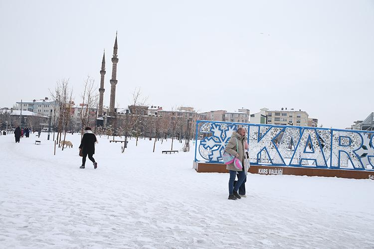 Kars'ta ise dün başlayan kar, sabah saatlerinde de etkisini sürdürdü.