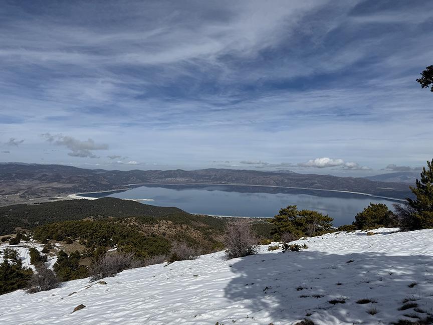 Burdur'dan ve çevre illerden bölgeye gelenler, kayak merkezine çıkarken Salda Gölü manzarasıyla karşılaşıyor.