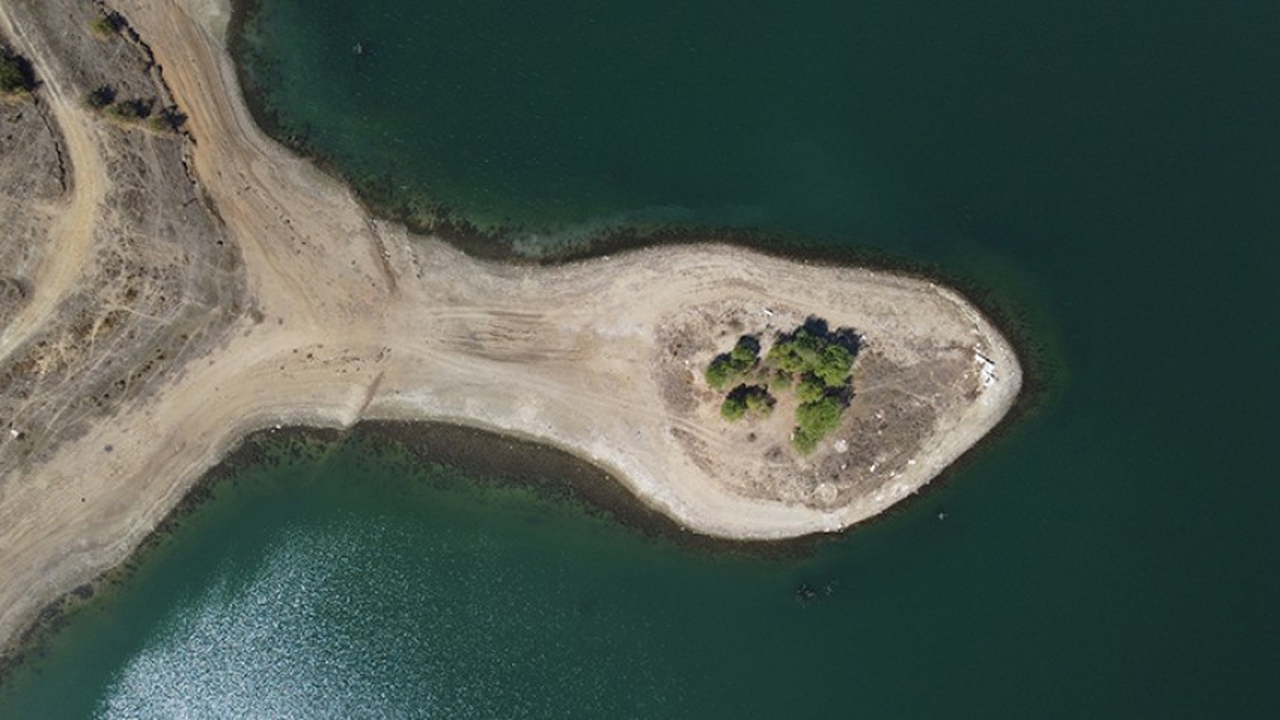 Yaklaşık 7 milyon 270 bin metreküp su hacmine sahip Günyurdu köyündeki Günyurdu Mustafa Eldemir Barajı'nda suların çekilmesiyle adacıklar oluştu.