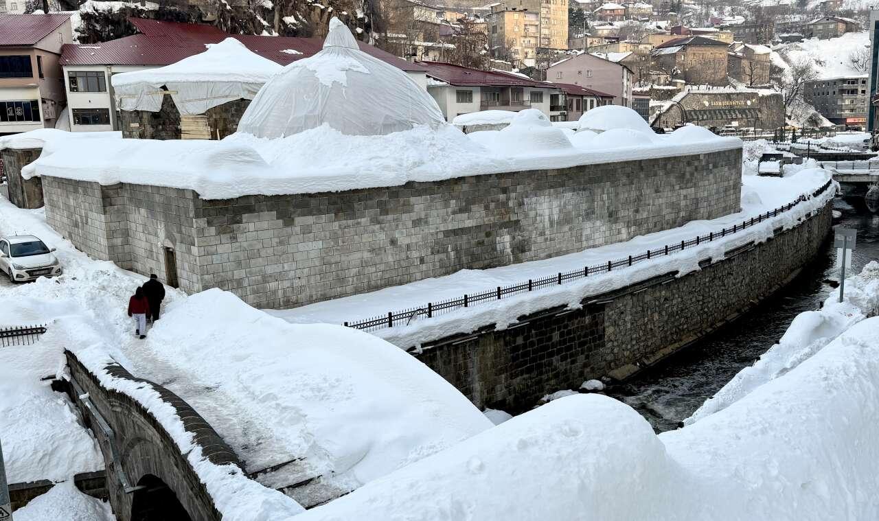 “Dere Üstü Islah” projesi kapsamında gün yüzüne çıkarılarak restore edilen tarihi alanlar, kar manzarasıyla dikkat çekti.