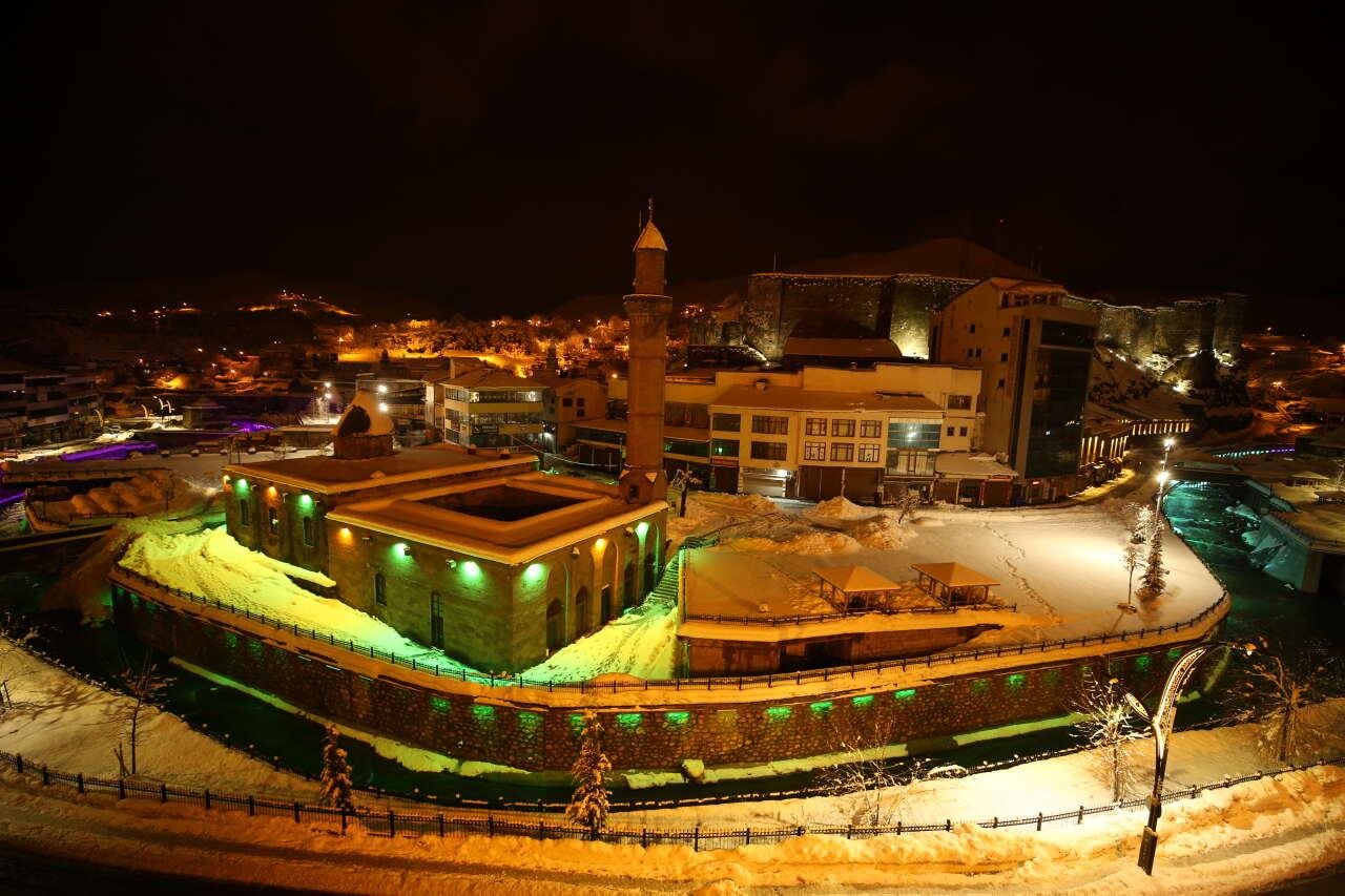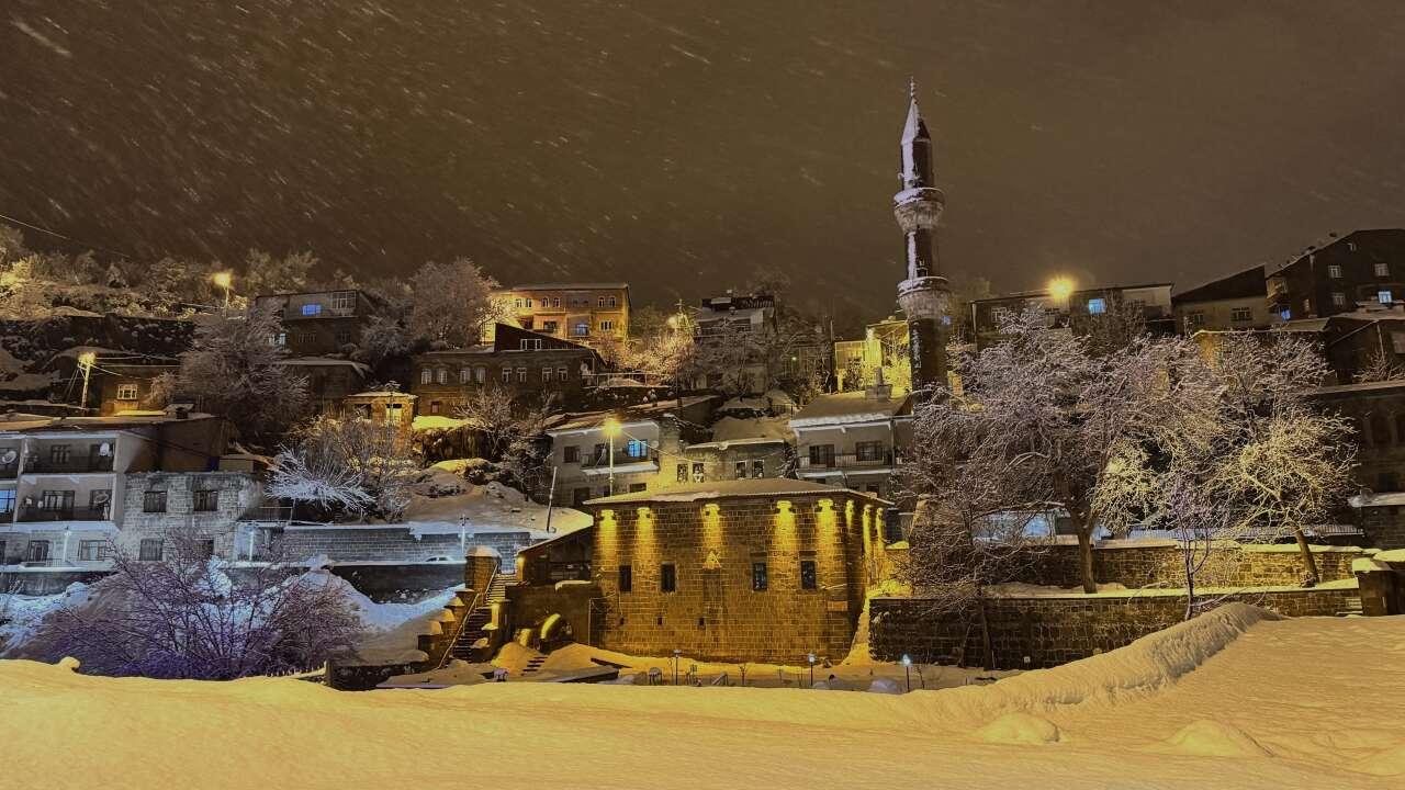 Türkiye’nin en fazla kar yağışı alan illerinden Bitlis’te etkili olan kar, tarihi ve turistik yapıları beyaz örtüyle kaplayarak görsel güzellik oluşturdu.