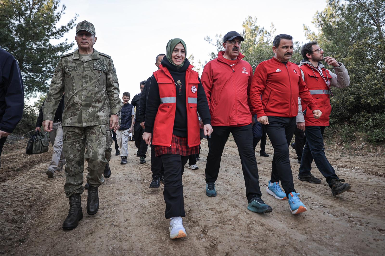Gençlik ve Spor Bakan Yardımcısı Safa Koçoğlu Gürsoy eşliğindeki grup, yaklaşık bir saatlik yürüyüşün ardından Conkbayırı'ndaki tören alanına ulaştı.