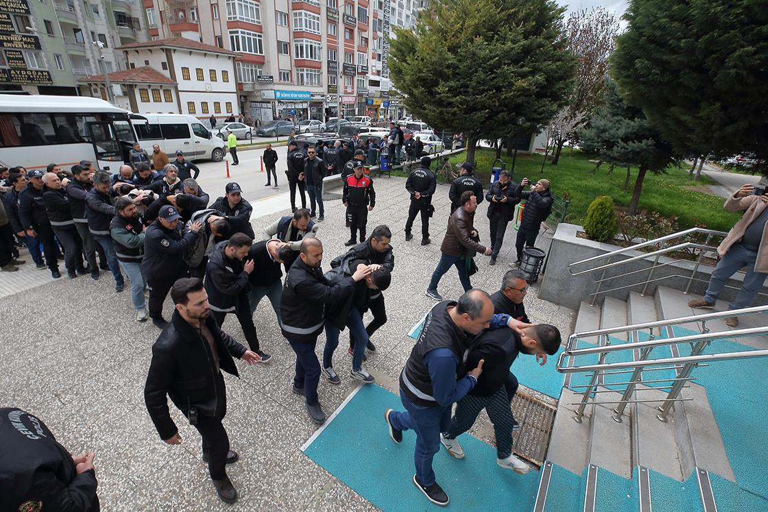 Emniyetteki işlemleri tamamlanan 23 şüpheli "suç işlemek amacıyla örgüt kurmak, yönetmek, üye olmak", "nitelikli dolandırıcılık", "ateşli silahla kasten öldürmeye teşebbüs", "ateşli silahla mala zarar verme", "suçtan kaynaklanan malvarlığı değerlerinin aklanması", "kişisel verileri hukuka aykırı olarak verme veya ele geçirmek", "tehdit", "hakaret", "kullanmak amacıyla uyuşturucu madde satın almak, kabul etmek, bulundurmak" suçlarından Çorum Adliyesi'ne sevk edildi.