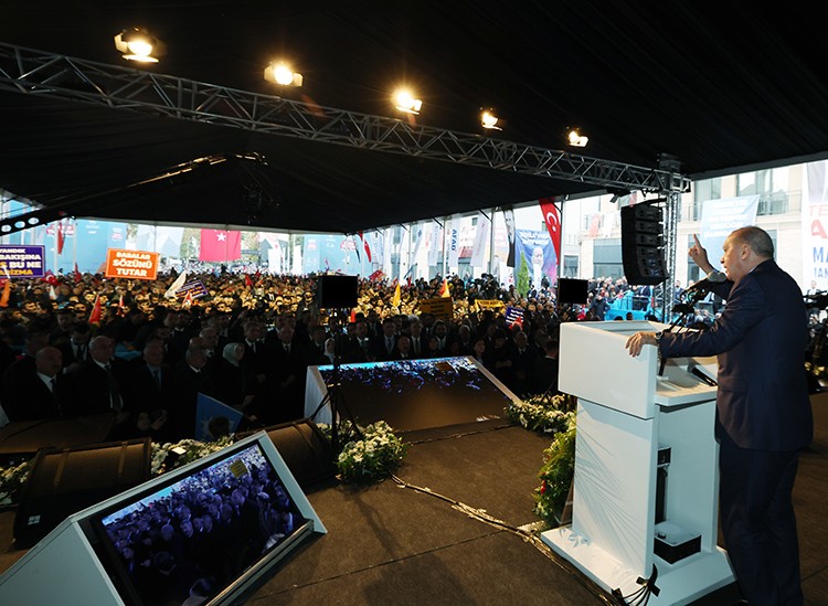 "Sizin sevginize, samimi dualarınıza mazhar olmaktan daima onur duydum. Bugüne kadar biz de sizin bu teveccühünüze halel getirmedik. Size mahcup olmadık. Sizinle olan kavlimize gölge düşürmedik. Hamdolsun bu şekilde de yolumuza devam ediyoruz." diyen Erdoğan, millete, ülkeye ve Adıyaman'a hizmet etmekten başka gayelerinin, insanların derdine çare bulmaktan, sıkıntılarına, sorunlarına çözüm üretmekten başka hiçbir amaçlarının bulunmadığını söyledi.