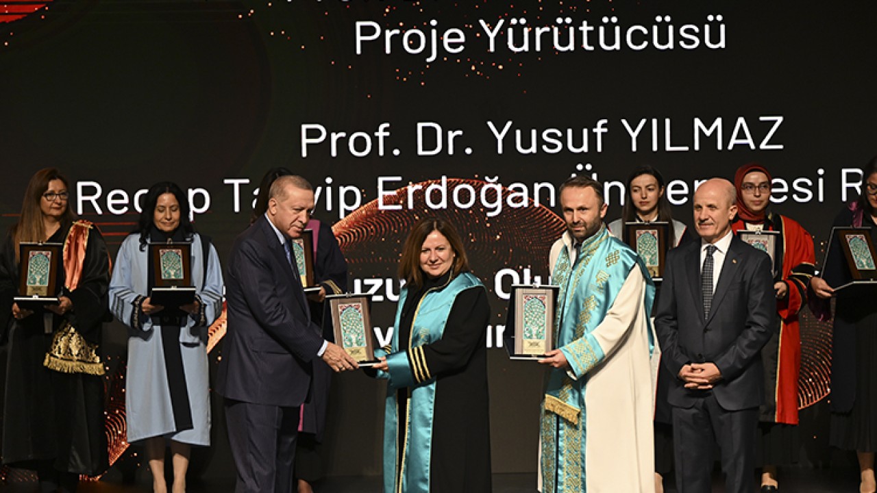 Kurumsal ödüller kategorisinde dijital dönüşüm ve büyük veri çalışmaları, toplumsal sorumluluk, uluslararası işbirliği, üniversite-sanayi işbirliği ve yerel kalkınmaya katkı dallarındaki ödüller de Erdoğan tarafından takdim edildi.