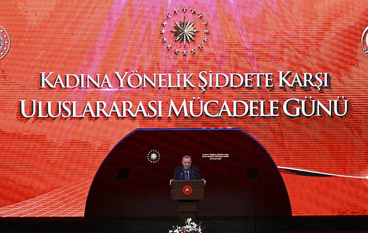 Cumhurbaşkanı Erdoğan, Beştepe Millet Kongre ve Kültür Merkezi'nde düzenlenen "Kadına Yönelik Şiddete Karşı Uluslararası Mücadele Günü" programına katıldı.