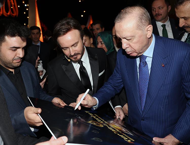 Konuşmasının ardından Cumhurbaşkanı Erdoğan'a, TRT ailesi adına TRT Genel Müdürü Zahid Sobacı tarafından hediye takdim edildi.