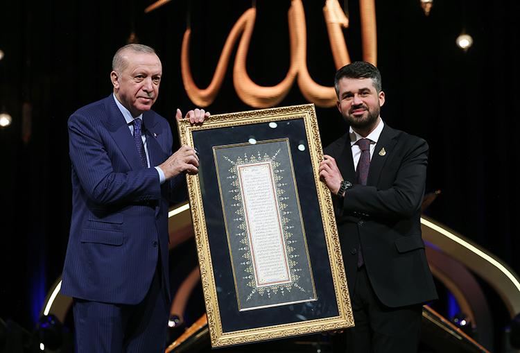 Cumhurbaşkanı Erdoğan daha sonra yarışmada birinci olan Enes Özsoy, ikinci olan Furkan Çınar ve üçüncü olan Muhammed Sizcan'a ödüllerini verdi.