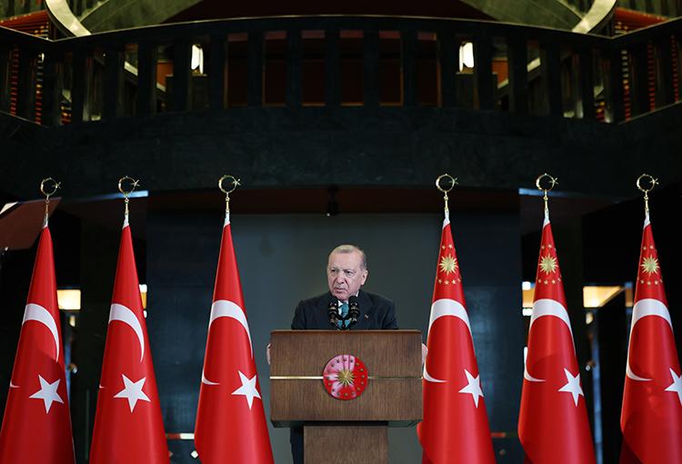 Erdoğan, gerek bölgede gerekse dünyada risk ve belirsizliklerin dalga dalga yayıldığı kritik bir dönemde iç cepheyi tahkim etmek amacıyla Cumhur İttifakı olarak tarihi bir adım attıklarını hatırlatarak, şu ifadeleri kullandı: