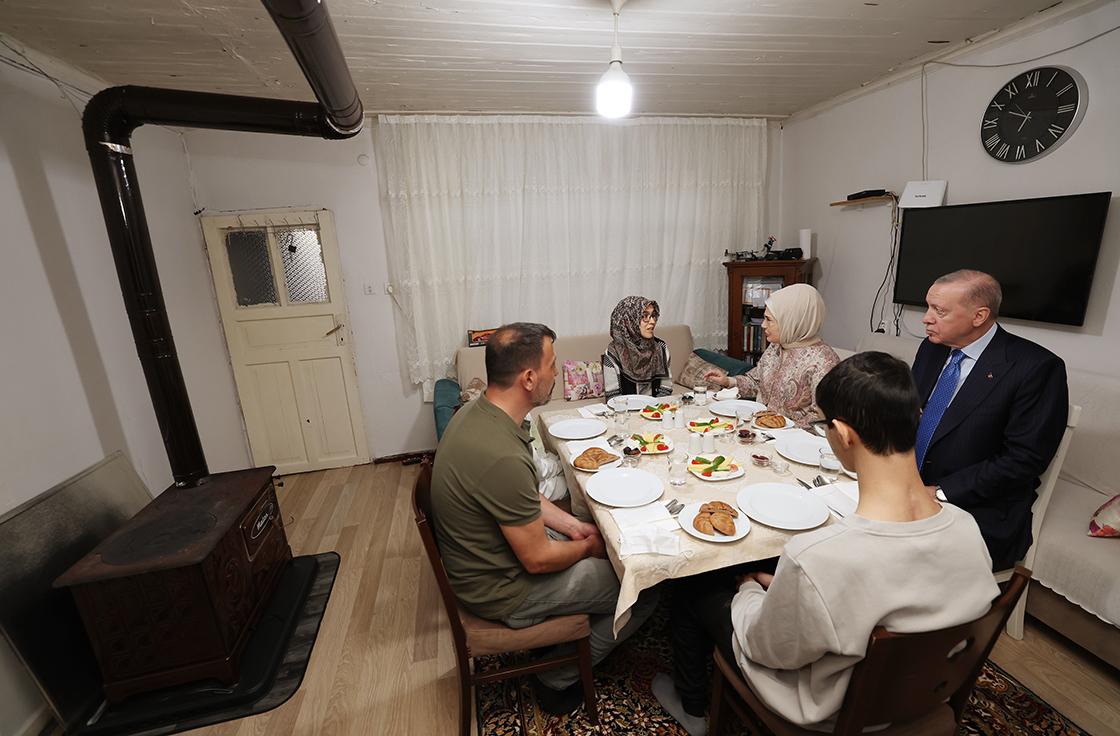 Emine Erdoğan, Cumhurbaşkanı Erdoğan ile Beyoğlu'nda ikamet eden Ali ve Miyase Kayacık çiftinin evinde iftar sofrasına konuk olmalarına ilişkin NSosyal hesabından paylaşımda bulundu.