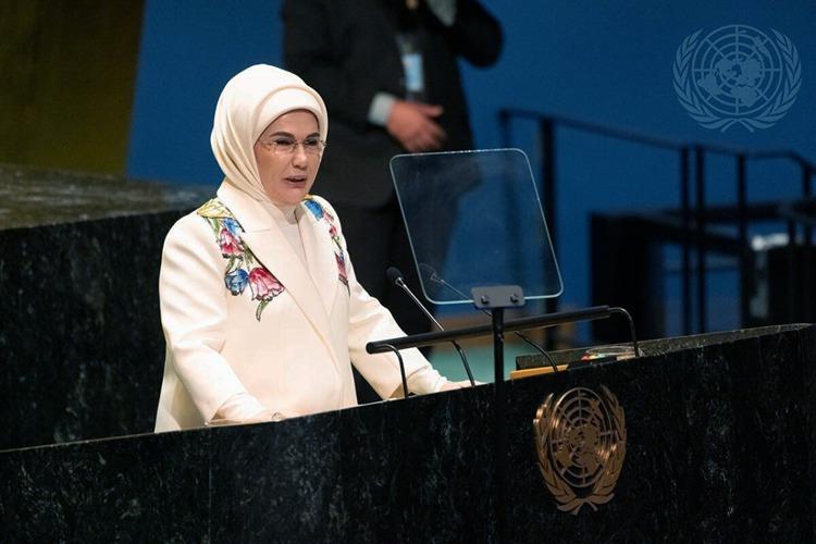 Emine Erdoğan, Guterres'in de katılımıyla BM Genel Kurulu'nda Türkiye'nin BM Daimi Temsilciliği, Sıfır Atık Vakfı, BM Çevre Programı ve BM-Habitat tarafından "Moda ve tekstilde sıfır atığa doğru" temasıyla düzenlenen 30 Mart "Uluslararası Sıfır Atık Günü Özel Etkinliği"nde katılımcılara hitap etti.