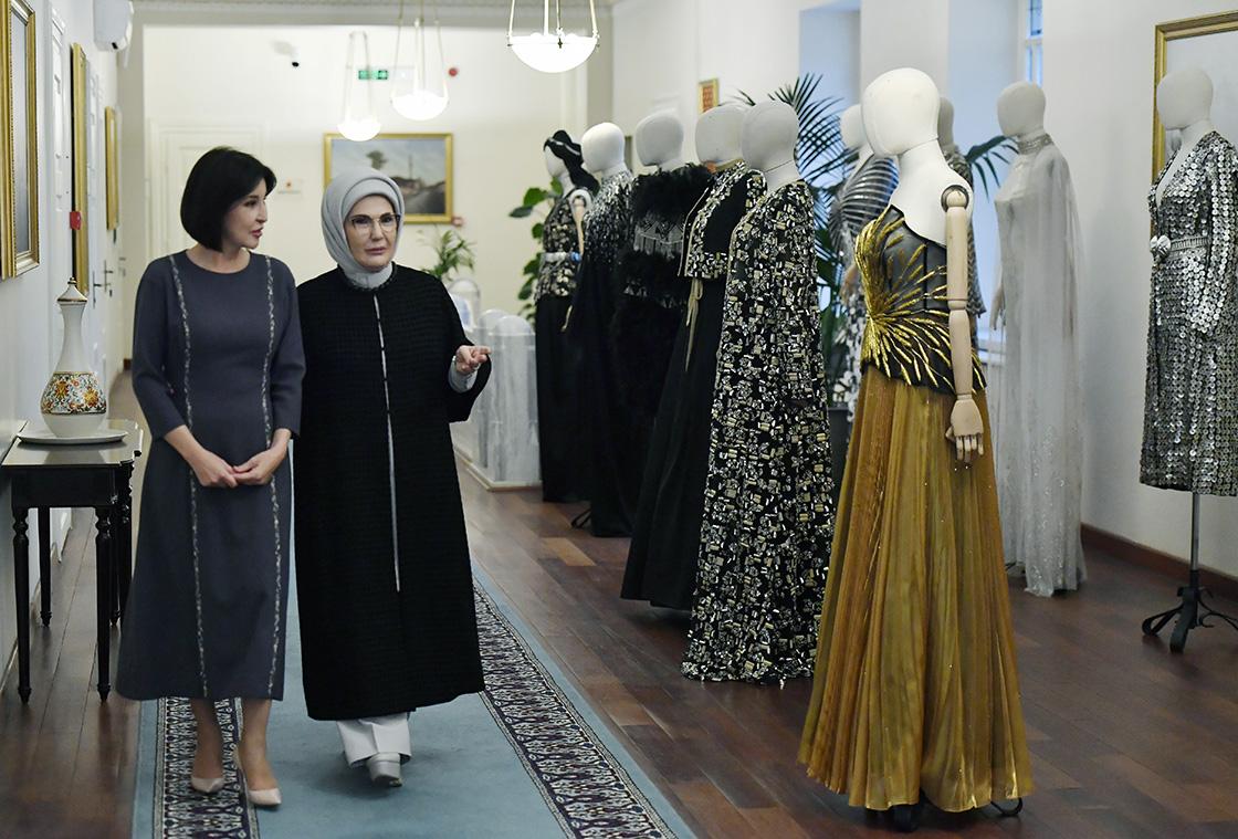 Lider eşleri, moda tasarımcısı Özgür Masur'un Cumhuriyetin 100. yılına ithafen tasarladığı kıyafetlerden oluşan "Anatolia" koleksiyonunu da yakından inceledi.