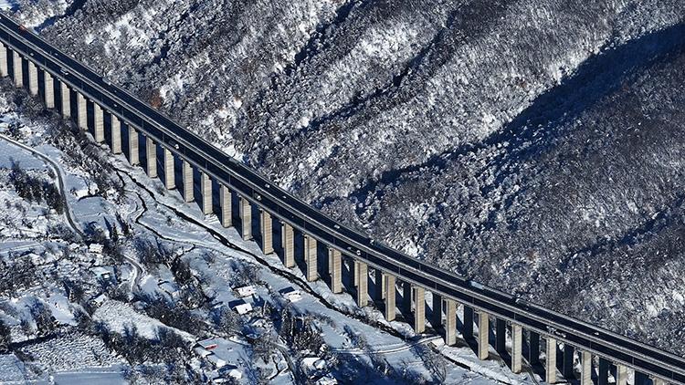 Bolu Dağı geçişinde karla kaplanan ağaçlar havadan da görüntülendi.