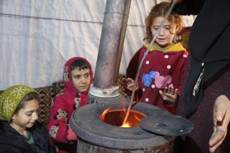 Um Uday, "Burada bulduğumuz kumaş, naylon ne varsa yakacak olarak kullanıyoruz. Sobayı yaktığımızda çadırın içi dumanla doluyor." ifadelerini kullandı.