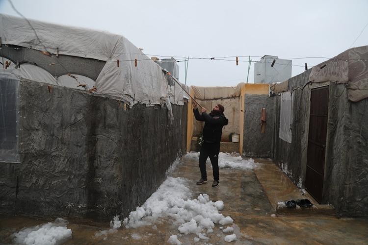 Nasır, "Kış şartları çok ağır. Aşırı soğuktan çok kötü durumdayız. Çadırın tentesi yoğun kar nedeniyle gece üzerimize çöktü. Çocuklara bir şey olmadı ama tüm eşyalarımız ıslandı." dedi.