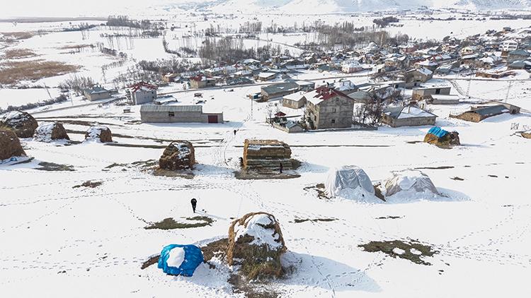 Bölgede kış şartlarının ağır geçtiğini vurgulayan Hakan, "Yazın biçtiğimiz otları köyün yakınlarındaki bir yerde topluyoruz. Kışın koyunları ağılda besliyoruz. Ot yetmezse yem alıyoruz. Otları bazen kızaklarla, bazen de sırtımızda taşıyoruz. Kışımız zor geçiyor ama mecburuz." dedi.