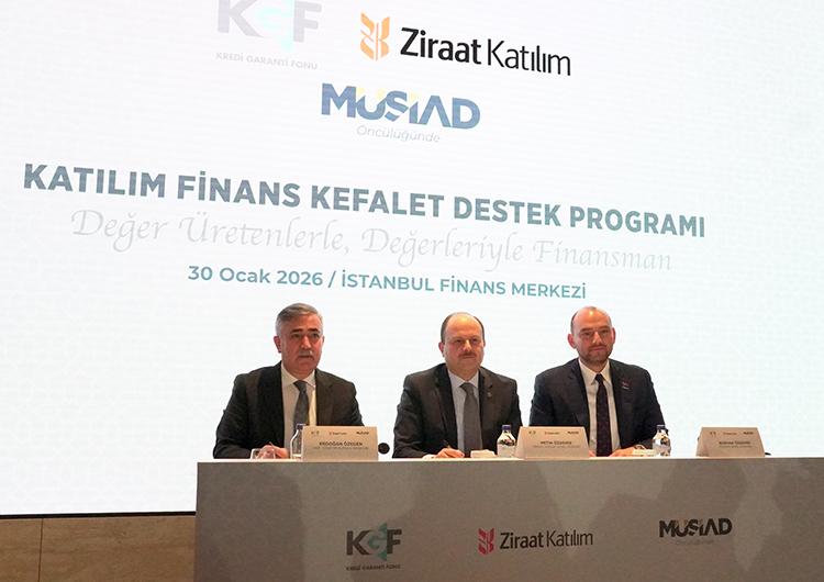 Kredi Garanti Fonu (KGF) ve Ziraat Katılım Bankası işbirliğiyle, Müstakil Sanayici ve İşadamları Derneği (MÜSİAD) öncülüğünde hayata geçirilen "Katılım Finans Kefalet Destek Programı"nın imza ve tanıtım töreni İstanbul Finans Merkezi Ziraat Kuleleri'nde düzenlendi.