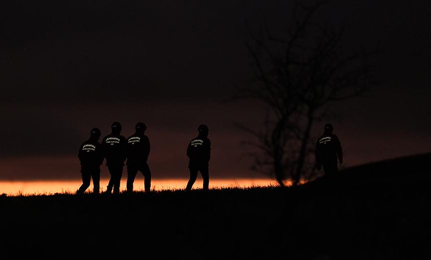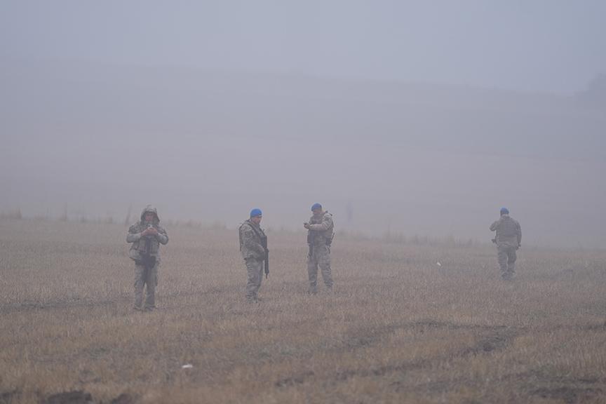 Uçağın düştüğü alanı güvenlik çemberine alan jandarma ekipleri, sivillerin bölgeye geçişine izin vermiyor.