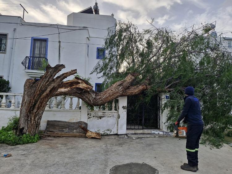 Bodrum Belediyesi Park ve Bahçeler Müdürlüğü ekipleri, fırtına nedeniyle devrilen ağaçları kaldırdı.