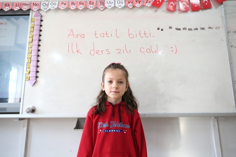 Hatay'ın İskenderun ilçesinde Nezahat Çeçen İlkokulu öğrencileri, tatil sonrasında arkadaşları ve öğretmenleriyle bir araya geldi.