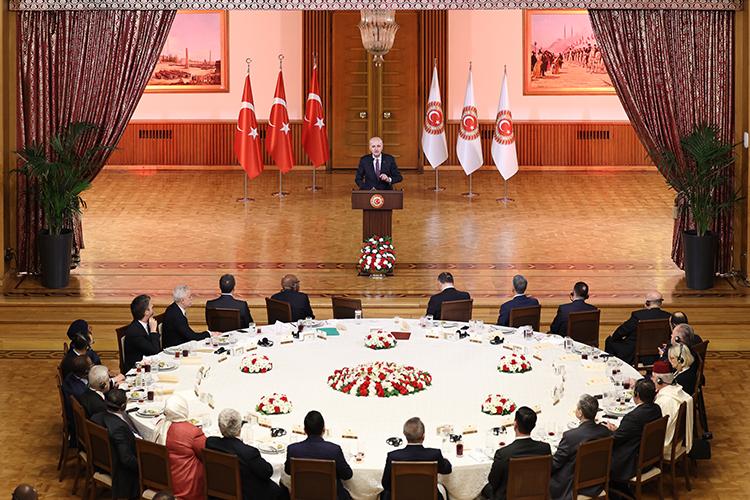 “İftar sofralarımız aynı zamanda medeniyetimizin canlı bir şekilde tanıtılması için vesiledir. Birliğin, beraberliğin, kardeşliğin, dostluğun paylaşıldığı, fevkalade değer verdiğimiz sofralarımızdır. Bu soframıza bu açıdan icabet ettiğiniz, davetimizi kırmadığınız için her birinize ayrı ayrı teşekkür ederiz. Türkiye'de bulunan yabancı misyonun bütün temsilcilerini, sadece resmi bir görevli olarak değil, aynı zamanda Türkiye'nin dostları olarak kabul eder ve her birinizi de kendi ailemizin bir parçası olarak telakki ederiz.”