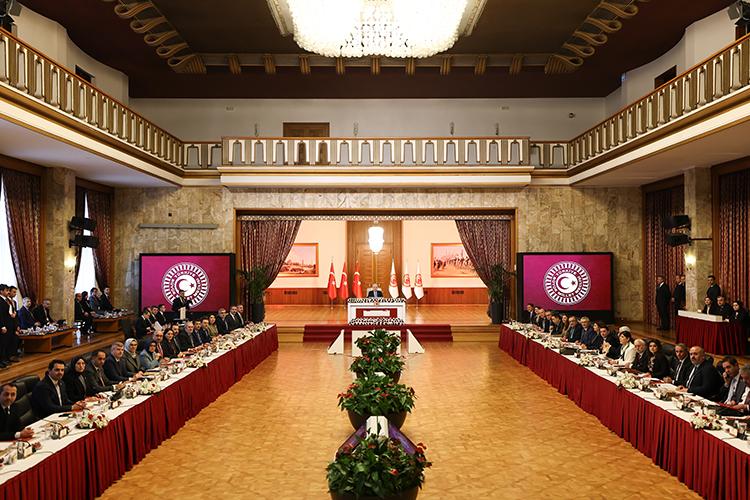 "Halkımızın uzun yıllar boyunca ağır bedeller ödeyerek karşı karşıya kaldığı sorunlar, Gazi Meclisimizin yasa yapıcı ve denetleyici niteliğiyle ele alındığında kalıcı bir çözüm ufku kazanmaktadır. Bugün terör meselesinde tarihi bir dönemden geçiyoruz. Bu süreçte milli iradenin tecelligahı olan Gazi Meclisimiz üzerine düşen vazifeyi tereddütsüz biçimde üstlenmiştir.