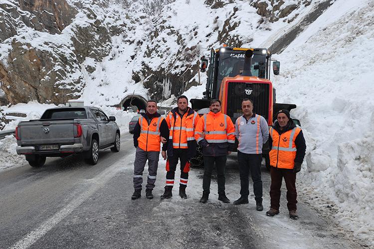 Yüksek rakımlı dağlar ve sarp kayalıklarla çevrili zorlu coğrafyada yolları açık tutmak için özveriyle çalışan ekipler, belli noktalarda hazır bekleyerek olası olumsuzluklara kısa sürede müdahale ediyor.