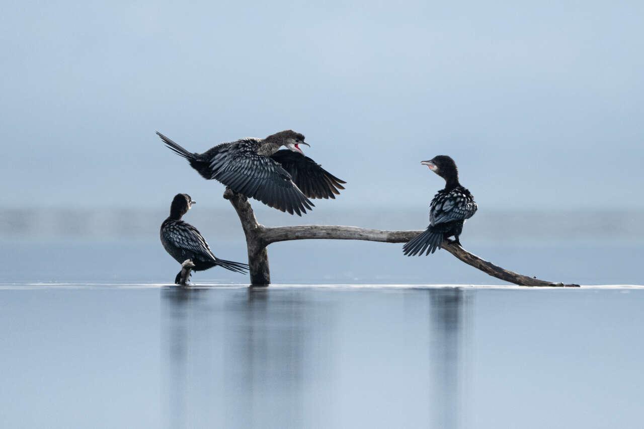 Uluabat Gölü’nde gözlemlenen küçük karabataklar, göl ve nehir kıyılarında yaşamlarını sürdüren türler arasında yer alıyor.