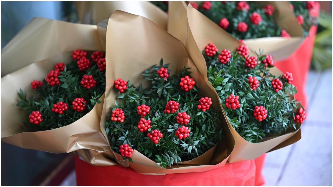 İki farklı bitkinin bir araya getirilmesiyle hazırlanan çiçek, özellikle yeşil yaprakları üzerinde yer alan kırmızı meyvesinin verdiği renkle hemen her yaştan insanın dikkatini çekiyor.