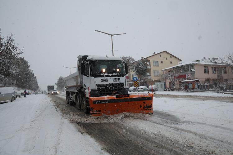 Öte yandan belediye ekipleri kent merkezinde de yollarda ve kaldırımlarda biriken karları temizlemeye çalışıyor.