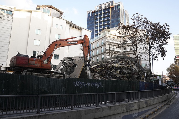 Tunus Caddesi'nde yer alan 5 katlı apartman, yıkım çalışması sırasında henüz belirlenemeyen bir nedenle çöktü.