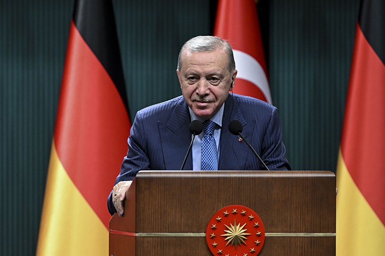 "Gerek Dışişleri Bakanım gerek Savunma Bakanım gerek istihbarat sürekli çalışıyoruz ki burada herhangi bir sıkıntıya fırsat vermeyelim diye. El ele vermeye hazırız. Şu anda da bu konuda ilgili bakanlarım bu talimatları almışlardır ve bu talimatla muhataplarıyla çalışmaya devam ediyorlar ve edeceklerdir. Nasıl ki 'Rusya-Ukrayna arasındaki savaş bitsin' diyoruz. Aynı şekilde de İsrail-Gazze arasında da bu savaşın bitmesinden yanayız. İnanıyorum ki Türkiye ve Almanya bu iş için el ele verebilecek iki önemli ülkedir."