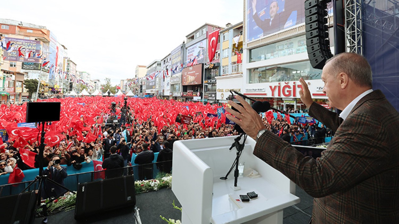 Cumhurbaşkanı Erdoğan, "Ortada harcanan milyarlar var ama eser yok, hizmet yok, icraat yok. Şimdi bunun hesabı yargımız tarafından sorulmasın mı? Meblağlar büyümüş ama sorunlar küçülmemiş hatta daha da artmış. Kesilen faturaların tutarı büyürken, hizmetin kalitesi değil, suç örgütünün banka hesapları büyümüş, ahtapotun kolları büyümüş, bavulların ebadı büyümüş, bir de döviz dolu baklava kutularının hacmi büyümüş. Yetimin, öksüzün, esnafın, emekçinin, emeklinin parası bir avuç soyguncu tarafından talan edilmiş, gasbedilmiş, birilerine peşkeş çekilmiş. Bu soygun düzenine bizzat kendileri göz yummuş. Şimdi bunlar ortaya dökülünce, CHP'nin başındaki zat 'siyasi operasyon' diyerek belediye soyguncularına sahip çıkıyor." ifadelerini kullandı.