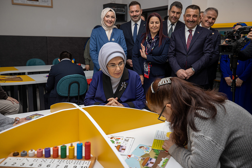 Katıldığı etkinlikte kitap okuyan çocukları dinleyen Erdoğan, engelli çocukların hayatlarını idame ettirmeleri için faaliyet alanında hazırlanan çalışmaları izledi.