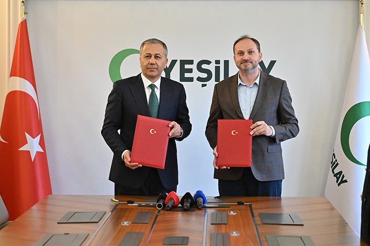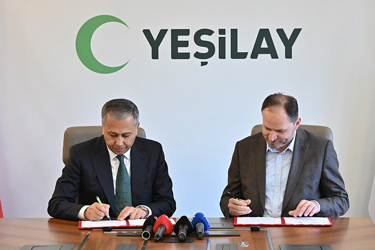 Bakan Yerlikaya ve Türkiye Yeşilay Cemiyeti Başkanı Dinç protokolü imzaladı.