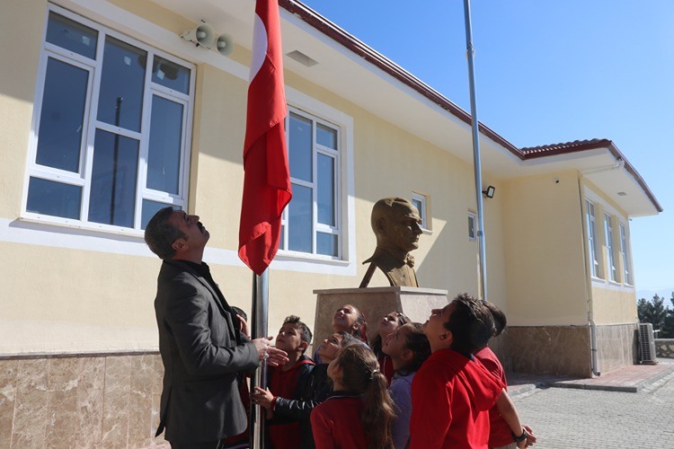 Malatya'nın Akçadağ ilçesindeki Güzyurdu Vestel Erdi Canbay İlkokulu'nda eğitim gören çocuklara, vatan ve bayrak sevgisi uygulamalı olarak veriliyor.