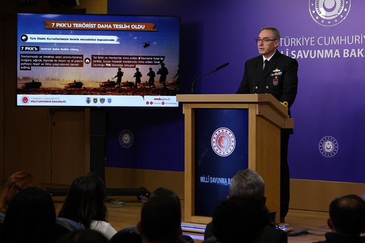 "Son bir hafta içerisinde 7 PKK'lı terörist daha teslim olmuş, sınırlarımızda ve ötesinde arazi arama-tarama, mağara, sığınak, barınak ile mayın ve el yapımı patlayıcı tespit ve imha çalışmalarına devam edilmiş, Tel Rıfat ve Menbiç'te imha edilen 6 kilometre tünel ile birlikte Suriye Harekat Alanlarında imha edilen tünel uzunluğu 708 kilometre olmuştur."